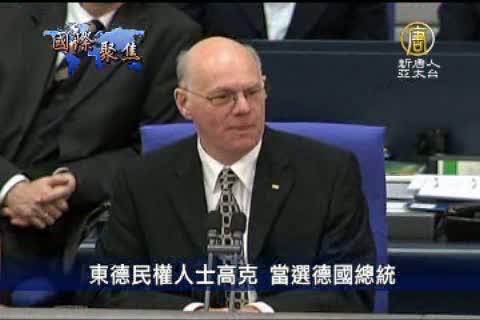 【新唐人亞太台2012年3月19日訊】3月18號,德國國會特別會議舉行新任總統選舉,最終由前東德民主運動人士高克以壓倒性票數,當選第11任德國總統。高克是過去和平推動1989年柏林牆倒塌的著名活動家之一。