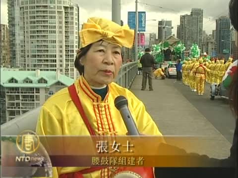【新唐人2012年3月19日訊】在溫哥華有這樣一群華人朋友,他們年過古稀,但依然經常活躍在溫哥華地區的各大節日遊行中。他們就是法輪功腰鼓隊的隊員們,下面跟隨本臺記者嘉蔓來看看他們的故事。