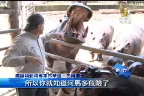 【新唐人亞太台2012年3月21日訊】在動物頻道裡常常看見接觸兇猛的鱷魚或毒蛇的主持人布萊迪‧巴爾博士,睽違五年,受到邀請,再度來台,16號造訪新竹知名野生動物園,通過詳細的解說,改變了一般人對兇猛鱷魚的既定印象。