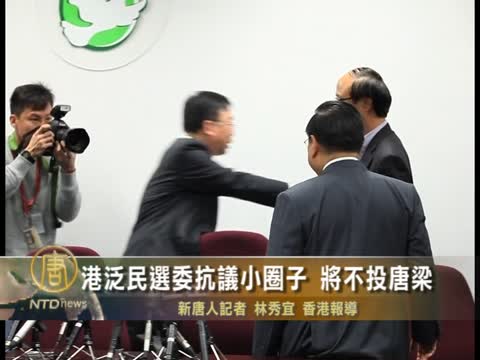 【新唐人2012年3月23日訊】香港週日特首選舉進入倒數的最後時刻,面對醜聞越爆越多的唐英年與梁振英兩個陣營,泛民主派選委已定出三合一運動,第二輪將不會投票,並且集體離場,以示抗議。