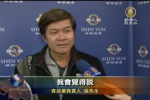 食品業負責人 張先生:「所有的表情,力量的顯示,還有對未來充滿希望的感覺。//(神韻)她們的每一個(節目)都顯示出生命的活力,會讓人(看了)感到說,哇更年輕了。會覺得下一代真的是非常有希望,怎麼形容啊,我會覺得說,我也想(要)像他們那樣有活力。」
