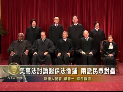 【新唐人2012年3月29日訊】美國最高法院對奧巴馬醫保改革法案的聽證進入最後一天。法官們正在考量,如果9名大法官決定宣佈奧巴馬醫保改革法案中“不買醫保就罰款”的條款違憲,那麼接下來這部法案的命運將何去何從。當天支持和反對法案的民眾在法院門前對峙,分別發出他們自己的聲音。