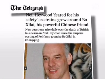 State-run Xinhua and CCTV made their reports in the evening with the English and Chinese versions going up almost simultaneously. The report included information from a police investigation into Heywood’s death. Previously, Heywood, who died in November, was reported to have died of a heart attack.
