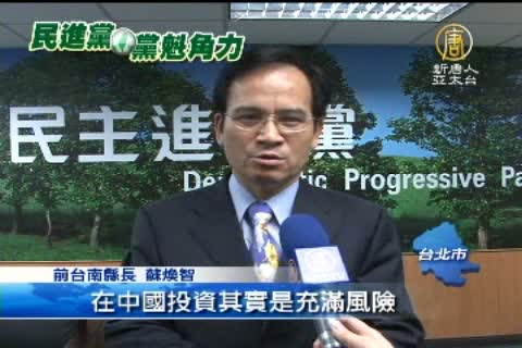 前台南縣長 蘇煥智:「現在馬政府一味吹噓中國這方面有多好、有多少機會,可是對這些風險的處理,風險的管控,風險的預防可以說也是束手無策,然後也不敢提,不敢挑戰,這是不應該的。」