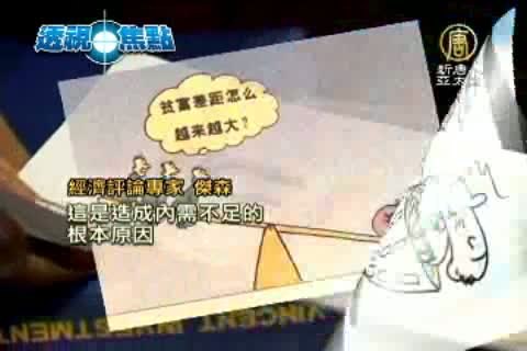 經濟評論專家 傑森:「中國的內需問題,也不是他執行一個政策就能解決的。中國目前嚴重的貧富兩極分化,這是造成內需不足的根本原因。另外,房地產對於老百姓資金的占有,還有整個中國不完善的社會保障體系,使得老百姓有錢也不敢花。醫療﹑養老﹑教育等等這些問題,不是他說就能做到的,況且他也沒有時間去系統的改變中國目前的養老體制﹑醫療體制,使老百姓敢花錢。」