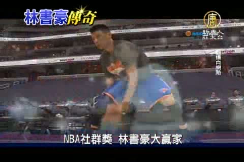 【新唐人亞太台2012年6月21日訊】回想起2012年NBA球季,您會想到哪一位風雲人物? 對全球NBA籃球迷來說,Linsanity,絕對是首選。第1屆NBA社群媒體獎今日頒獎,台裔球員「林來瘋」林書豪是最大贏家,不但拿下年度社群人氣球員獎更入圍最大的史詩獎及快照獎。林書豪以 對洛杉磯湖人隊拿下38分入圍史詩獎,頒獎典禮由NBA TV轉播,由前球員佛克斯 與歐尼爾 共同主持,主持人特別電話訪問目前在舊金山的林書豪,林書豪透過電話表示,對湖人隊的比賽是他籃球生涯最值得紀念的比賽之一,而他也很想念籃球,未來會繼續與在社群媒體上的朋友一同分