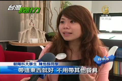 「這是一個萬用餐具,它可以當叉子也可以當筷子,拉下來打開之後就可以當成筷子去夾食物,另外一頭就是湯匙,發想這東西出去之後,就可以帶這東西就好,不用帶其它餐具,也是有環保的概念。」