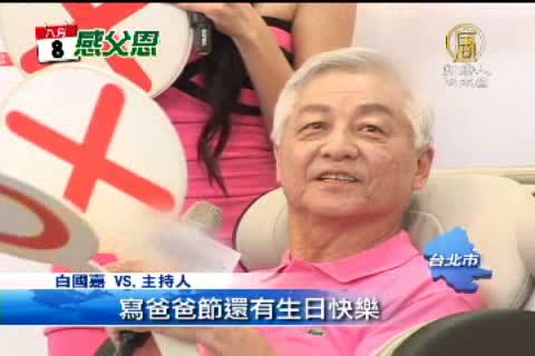 【新唐人亞太台2012年7月24日訊】父親節即將到來,保健業品牌龍頭特別邀請,名模白歆惠和電視公司資深導播白國嘉,擔任公益活動嘉賓,也是父女檔首度同台亮相,除了跟大家分享彼此間的關愛,也希望透過公益活動,喚起更多人的愛心,幫助弱勢兒童。