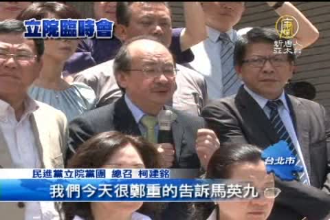 【新唐人亞太台2012年7月25日訊】今天立院臨時會,除了處理美牛與證所稅,民進黨還提出對陳沖內閣的不信任案,不過,院長王金平最後裁定,臨時會不處理特定事項,在野三黨批評這是違憲,下禮拜將提釋憲。