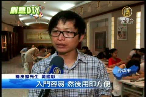 【新唐人亞太台2012年7月25日訊】傳統版畫使用木材為媒介,不但版材取得不易而且操作困難,知名創作藝術家「橡皮擦先生」黃建彰改以橡皮擦為版材,讓手作刻章輕鬆入門,還可以跟生活結合,讓民眾輕鬆感受到親手創作的樂趣。