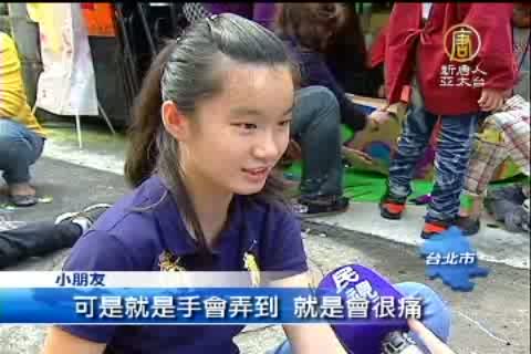 【新唐人亞太台2012年12月16日訊】接下來把鏡頭轉回台灣,台北市街頭上午舉辦了一場別開生面的繪畫活動,小朋友把馬路當成了畫布,就算是有些有小朋友畫到滿身大汗,或者是弄傷手,他們都還是說好好玩。