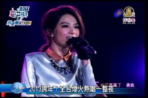 【新唐人亞太台2013年1月1日訊】跨年夜寒流來襲,但卻澆不熄全台民眾的高亢情緒,算一算全台灣昨天共有13場大型跨年活動同時舉行,為了吸引人潮,主辦單位也都有不同安排。像高雄夢時代廣場,就請來五月天開場,久違的女子天團S.H.E.也獨家在台中舉行跨年演唱,無論是演唱會卡司,或是特別的煙火秀,都希望民眾不論在哪個城市,熱鬧迎新年。