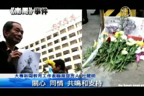 【新唐人亞太台2013年1月14日訊】港人撐《南方周末》行動不斷升級,繼學者聯署、泛民主派政黨遊行抗議後,香港六間大專傳播系會、大專新聞教育工作者聯席皆發表聲明,聲援《南周》及譴責官方打壓新聞自由。