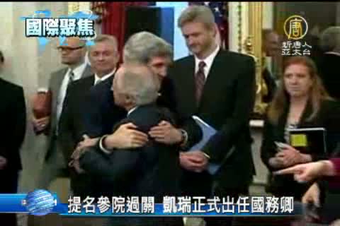 【新唐人亞太台2013年1月30日訊】美國聯邦參議院外交關係委員會,週二投票通過總統歐巴馬提名參議員凱瑞擔任國務卿的任命案。現年69歲的凱瑞,已經擔任5任參議員曾在2004年,與小布希競選總統失利。外電報導,凱瑞在任命聽證會上曾表示,他將繼續信守「台灣關係法」,提供足夠的軍備以協助台灣保有足夠的防禦能力。