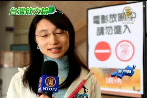 【新唐人亞太台2013年2月5日訊】金門曾經靠著10萬駐軍,商業、消費一度非常熱絡,軍、民戲院多達17家,但隨著裁軍、撤軍的演變,戲院一家家關門,金門已經有將近五年沒有戲院了。為了 彌補金門沒有電影院的缺憾,金城鎮長石兆民積極找贊助,為民眾爭取免費看電影的機會,日前一連五天播放20場《少年PI的奇幻漂流》,共計有1萬1千2百 多人受惠。