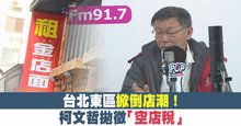 2019-02-23 20:23:35台北東區逐漸沒落,掀起倒店潮,惹的藝人羅霈穎對市長柯文哲喊話,要他設法讓東區起死回生,但柯文哲認為,店租居高不下是重要關鍵,透露市府正慎重思考徵收「空店稅」,要來解決房屋持有成本太低的問題。