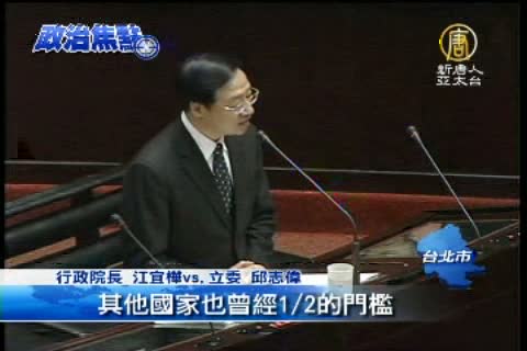 【新唐人亞太台2013年3月19日訊】核四議題今天再度成為立法院攻防焦點,民進黨立委邱志偉質疑,70%的民意否定核電,江宜樺卻回答「民調只能當參考」,讓立委,砲聲連連。