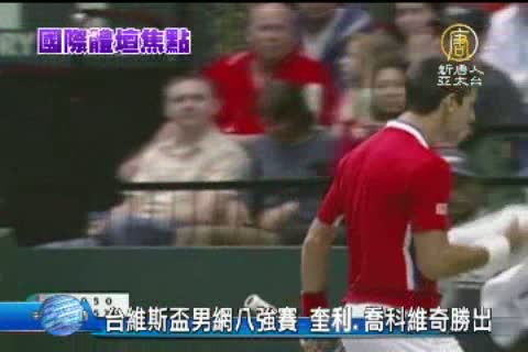 【新唐人亞太台2013年4月6日訊】2013年台維斯盃男子網球單打八強賽,5日在美國愛達荷州首府博伊西的塔可鐘室內球場開打。塞爾維亞選手喬科維奇和美國選手奎利分別在比賽中有精彩勝出。