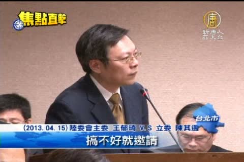 (2013.04.15)陸委會主委 王郁琦 V.S 立委 陳其邁:「淪為中國的統戰分支機構,為虎作倀,你自己回去查查看好不好,香港去中國,這些委員都是特邀,跟台灣沒有甚麼差別,我跟你講,馬總統搞不好卸任之後,我不曉得他個人意願怎麼樣,搞不好就邀請,擔任特邀的政協副主席,委員個人的臆測,我個人的臆測?」