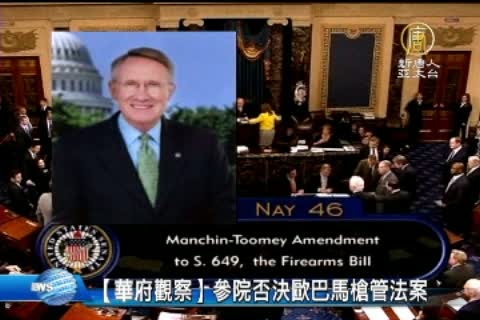 【新唐人亞太台2013年4月19日訊】面對美國接連發生爆炸槍擊案,槍枝管制的問題,再次受到關注。帶您關心,美國國會參議院週三,對槍支管制改革法案,進行了投票,不過沒有得到可通過的票數。這項提案由兩黨參議員共同起草,其中每一條將加強槍支管制的修正案都得到了多數、甚至絕大多數美國人的支持,不過卻仍在投票中被參院全部否決。我們的華盛頓觀察。