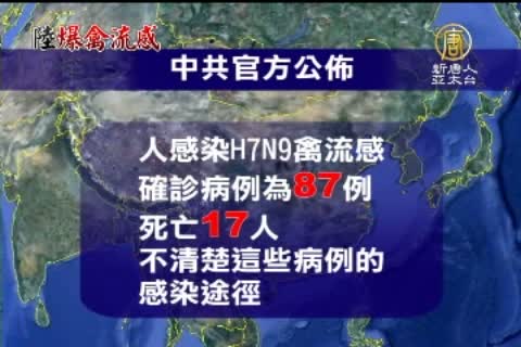 【新唐人亞太台2013年4月20日訊】大陸官方鬆口稱H7N9禽流感疫情可能人傳人,世界衛生組織專家昨天抵達上海,考察中國疾控中心、流感檢測實驗室以及收治病患的醫院、活禽市場等,追查病毒感染源。不過,世衛專家在星期五的記者會上表示,在中國的人感染H7N9禽流感病例中,有一半以上的患者是沒有接觸過飛禽類的。再度引發外界進一步猜測,H7N9禽流感病毒是否在人與人之間傳播。