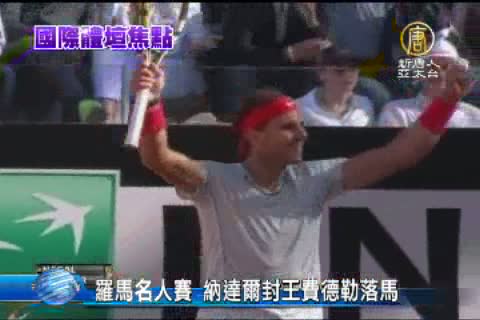【新唐人亞太台2013年5月20日訊】ATP羅馬名人賽結束了最後的冠軍爭奪戰。西班牙蠻牛納達爾最終以6比1和6比3輕鬆擊敗瑞士球王費德勒,拿下本賽季的第6個冠軍。