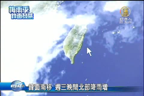 【新唐人亞太台2013年5月22日訊】梅雨鋒面從上週六開始影響台灣,不過隨著鋒面減弱,氣象局預測雨量也跟著下修,上午各地稍微出現降雨的空檔,不過隨著鋒面往中部移動,今晚到明天,北部地區雨勢會再變大,中南部加上西南風影響,還是會有豪雨的可能。