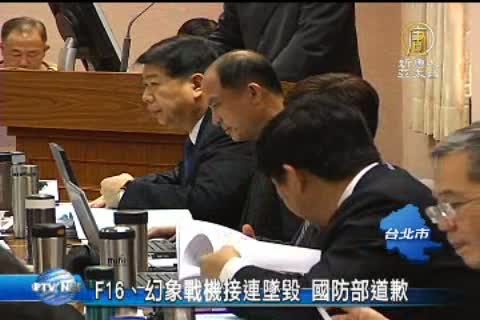 【新唐人亞太台2013年5月23日訊】針對空軍F-16及幻象2000戰機接連失事,國防部長高華柱今天在立法院公開道歉,他說,失事原因初判是機械故障導致,高華柱也希望各界支持空軍基層飛行員,讓他們早日恢復信心。