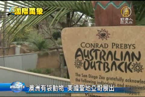 【新唐人亞太台2013年5月25日訊】位於美國加利福尼亞州的聖地亞哥動物園,星期五(5月24日)展出多種具有澳洲特色的有袋動物,包括無尾熊、袋熊、沙袋鼠,以及23種澳洲稀有鳥類等。帶你一起來看看。