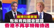 維持川普政策! 布林肯向國會認證香港不再享特殊待遇