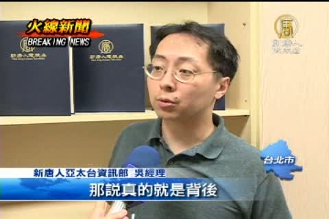 新唐人亞太台資訊部 吳經理:「過去的話也是在那個,中共建政十一的前後,那新唐人亞太台的衛星曾經被蓋台了,都是在一個這樣,所謂中共敏感日,的那個期間裡面,我們就會出現 一些,就是服務異常的現象。那(這次)而且就是說,能夠發揮那麼大規模DDOS的攻擊,那真的就是背後,確實是有一個比較有力量的,這樣的駭客,組織性的駭客行為。」