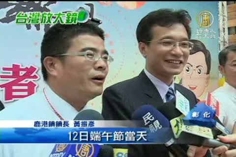 鹿港鎮鎮長 黃振彥:「有路上龍舟比賽,12日端午節當天,在文物廟有一個彩繪立蛋活動,到下午2點後我們鎮公所準備500個福袋要送給所有來到鹿港的旅遊的好朋友。」