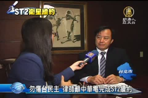 【新唐人亞太台2013年6月7日訊】從三月至今,引起海內外高度關切的新唐人與中新二號衛星續約案,何時簽定,持續受到關注。人權律師邱晃泉表示,面向華人社會、新唐人扮演為中國民主化積極發聲的重要管道,中華電信應當體認到保有這種價值的重要性,盡速完成中新二號衛星續約。