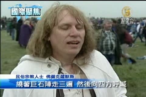 【新唐人亞太台2013年6月22日訊】巨石陣是是英國最有名的史前文明遺跡,也是歐洲著名的史前時代文化神廟遺址,位於英格蘭威爾特郡索爾茲伯里平原,約建於4300年前。每年的夏至,巨石陣都會出現有趣的自然奇觀,吸引了大批遊客前往觀看。今天正好就是夏至,我們就到這個著名的巨石陣來看一看。
