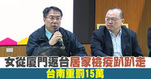 女從廈門返台居家檢疫趴趴走 台南重罰15萬