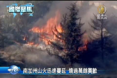 【新唐人亞太台2013年8月10日訊】洛杉磯東方的河濱縣山區,從八月七日開始焚燒的山中野火,因為天乾物燥加上強風助陣,火勢擴散迅速,導致至少6人受傷,500個家庭被迫撤離,火勢波及一萬六千英畝。來看當地發回的報導。