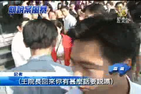 記者:「總統 王院長回來你有甚麼話要說嗎。」