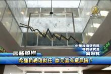 2015-01-27 21:42:10希臘大選結果出爐,反對緊縮政策的激進左翼聯盟黨魁齊普拉斯成為新總理,讓歐洲是一片緊張,不過,從齊普拉斯宣誓就任總理的第一天看來,希臘並沒有立即 和歐元區或歐盟 正面對峙,甚至雙方都表態願意協商。怎麼看待接下來歐元區要面臨的挑戰?今天的焦點縱橫,為您解析。