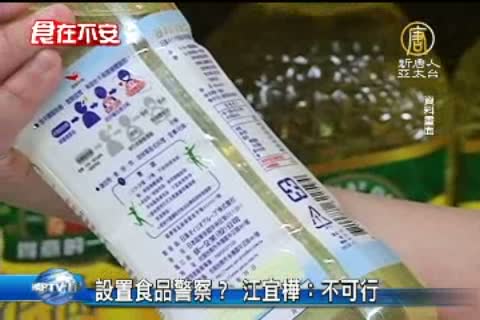 【新唐人亞太台2013年11月5日訊】食安危機不斷,到底要怎麼防範。今天(5日)立委質詢江宜樺,是不是有可能設置食品警察,江宜樺說,食品檢驗屬於專業問題,而且警力吃緊,因此,不太可能設置食品警察。