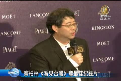【新唐人亞太台2013年11月23日訊】帶您看到,金馬獎頒獎典禮的最新情況,年度台灣傑出電影工作者頒發給電影《總部師》監製葉如芬,五部由台灣囊括的最佳紀錄片,最後由《看見台灣》奪得獎項。 我們趕快帶您,看到齊柏林剛剛在後台接受採訪的情況。