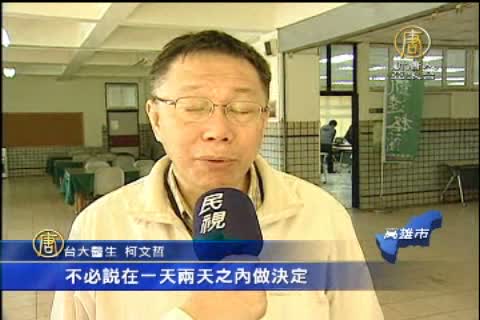 台大醫生 柯文哲:「事緩則圓,急事緩辦,我想這種事情反正怎麼拖也不會拖過3月。所以一兩個月的時間讓一個比較重大的事件,大家去思考一下,不必說在一天兩天之內做決定,我想這應該是比較正確的態度。」