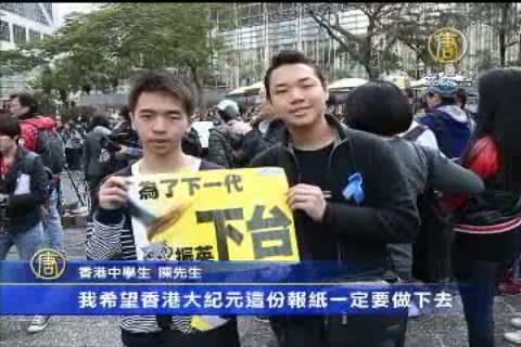 香港中學生陳先生:「我希望香港大紀元這份報紙一定要做下去,因為香港報章的言論自由已經逐漸消失,如果再沒有一些其他報章的加入,我不想以後打開報紙看到一些盡是。」