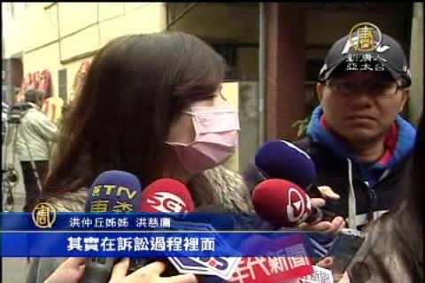 【新唐人亞太台2014年3月8日訊】眾所關注的洪仲丘疑遭體罰致死案,桃園地院做出一審判決,洪家人當庭痛哭,無法接受這樣的結果,今天洪家大姊洪慈庸表示,該案從軍檢移到桃園地檢署偵辦,但承辦檢察官仍依照軍檢引用的法條,偵辦不夠積極,太過保守,間接導致這樣的判決結果,法官判這樣的刑度的確是在意料之外,但她們不會放棄。