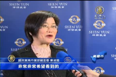 國民黨高市黨部副主委 蔡淑雅:「在整個觀看演出的過程當中,我看到力量、美麗,還有最重要的就是對於中華文化的闡揚。我相信是所有華人世界非常非常希望看到的。而且整個的色彩、音樂,可以涵蓋中華文化非常非常多豐富的內涵。」