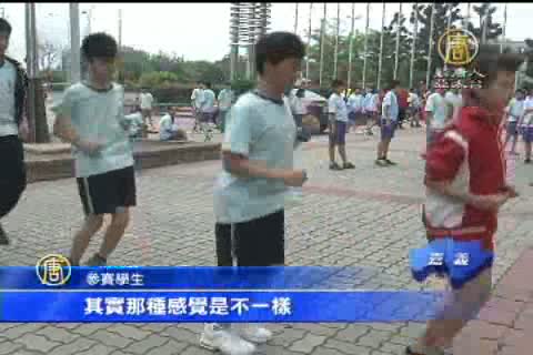 參賽學生:「練(跳繩)的時候,就是常常腳抽筋,很辛苦,還被甩到臉,這次跳(繩比賽) ,突破我們的記錄,很開心。」