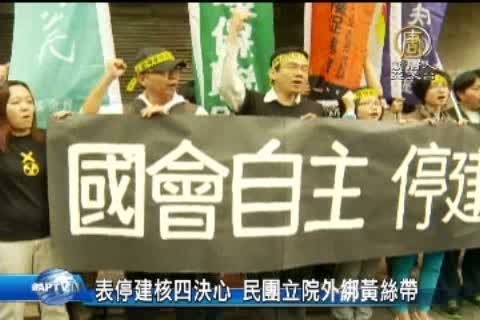 【新唐人亞太台2014年4月25日訊】今天,立法院院會要處理核四公投特別條例。上午,有多個公民團體在立法院外高分貝呼籲,如果朝野無法對停建核四達共識,明天開始,他們將無限期靜坐凱道。我們連線給在立法院的記者林妤,告訴我們現場情況。