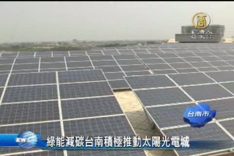 【新唐人亞太台2014年4月25日訊】提倡綠能減碳,台南市鼓勵並補助企業與社區民眾裝設太陽光電系統,積極推動太陽能光電城。既符合環保,又能擴大光電產業規模,還可以降低對核能發電的依賴。