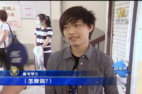 【新唐人亞太台2014年5月17日訊】史上第一屆國中教育會考,今、明兩天登場,全台灣有27萬1205名考生應試,第一天上午先考自然、英文,下午考國文、寫作測驗,今天一整天的考場秩序,大致良好。