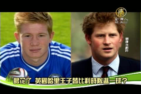 一樣是美比之戰,比利時球員凱文?德布勞內,接獲隊友傳球並射門,首開領先記錄。不過有些觀眾發現,凱文?德布勞內有張超級明星臉,像極了英國哈利王子,甚至開玩說 ,英國王子替比利時進一球。