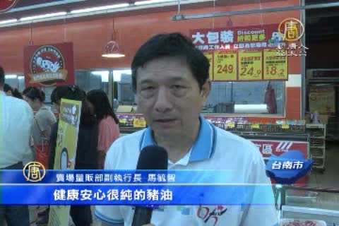 賣場量販部副執行長馬毓智:「本身有養滿多的豬,我們自己也有量販店,量販店本身有賣豬肉,我們也可以從,我們的豬肉榨豬油,讓顧客能買到健康、安心、很純的豬油。」